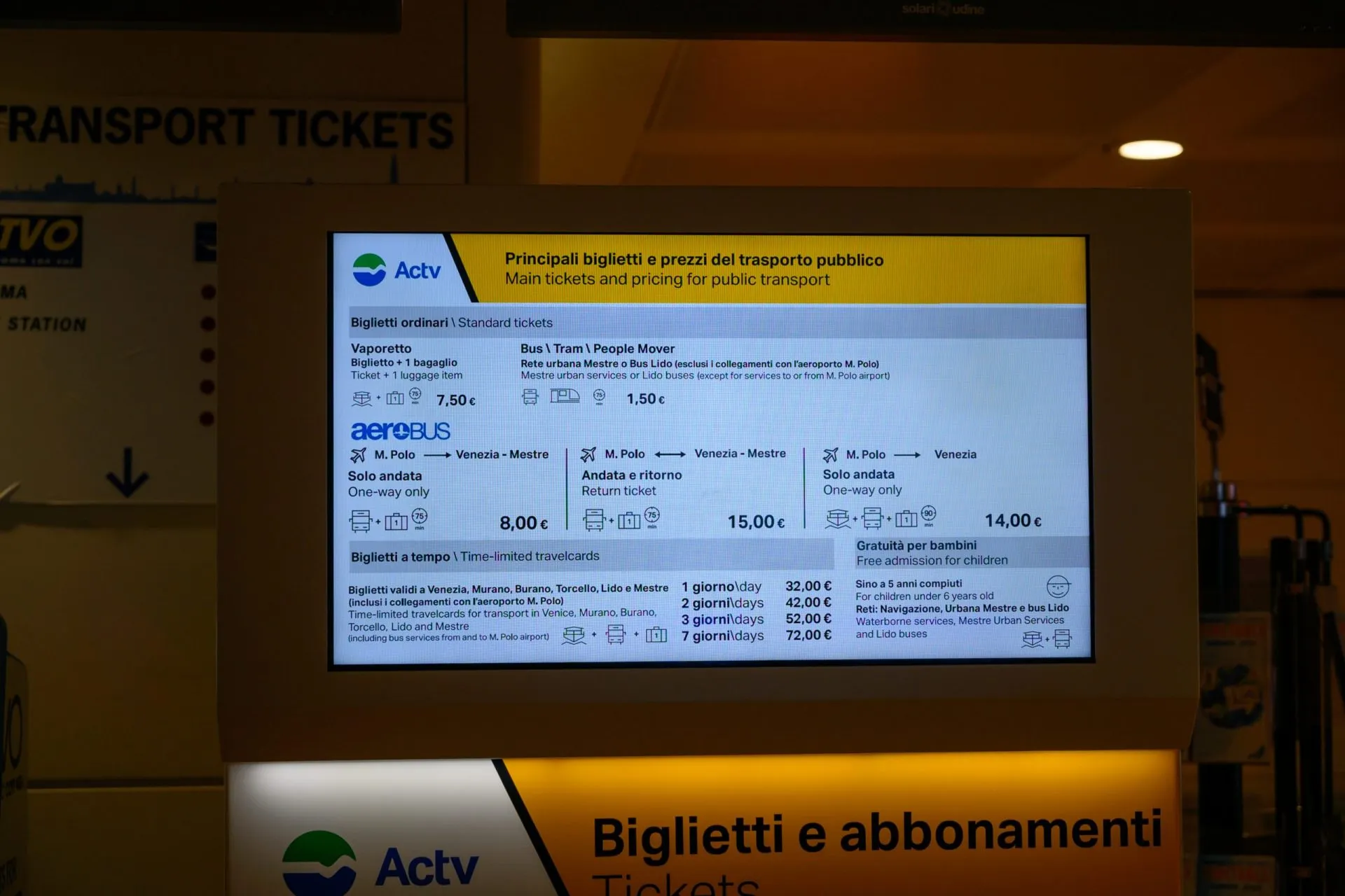 ベネチアに行く水上バスのチケット。長距離バスが来るまでの1.5時間で往復ギリギリなので諦める。