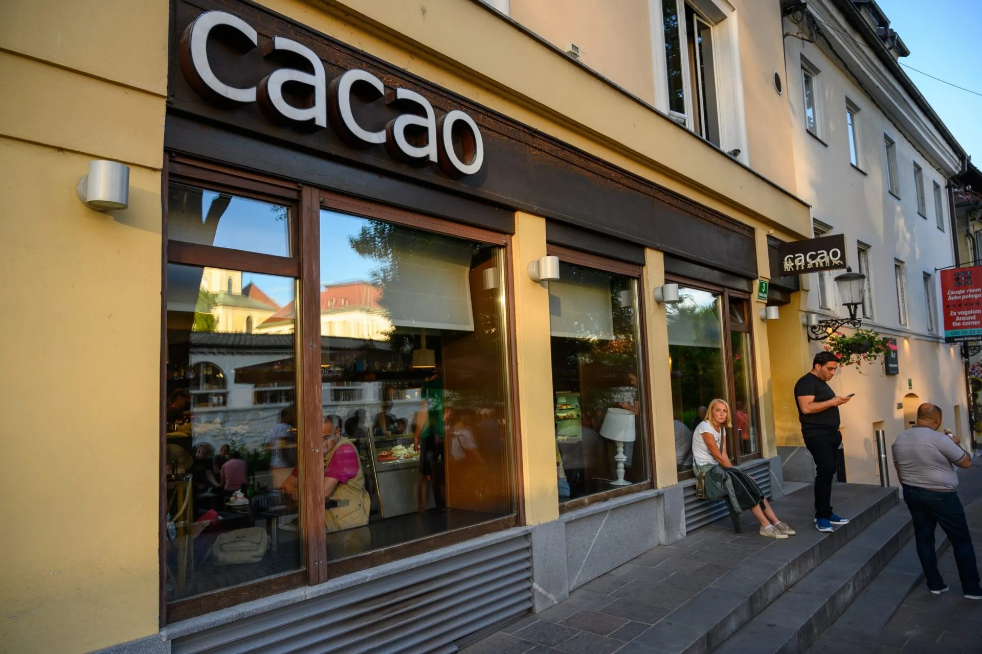日本から約24時間かかってリュブリャナに到着。レストランの入り口。bitcoin決済可能!