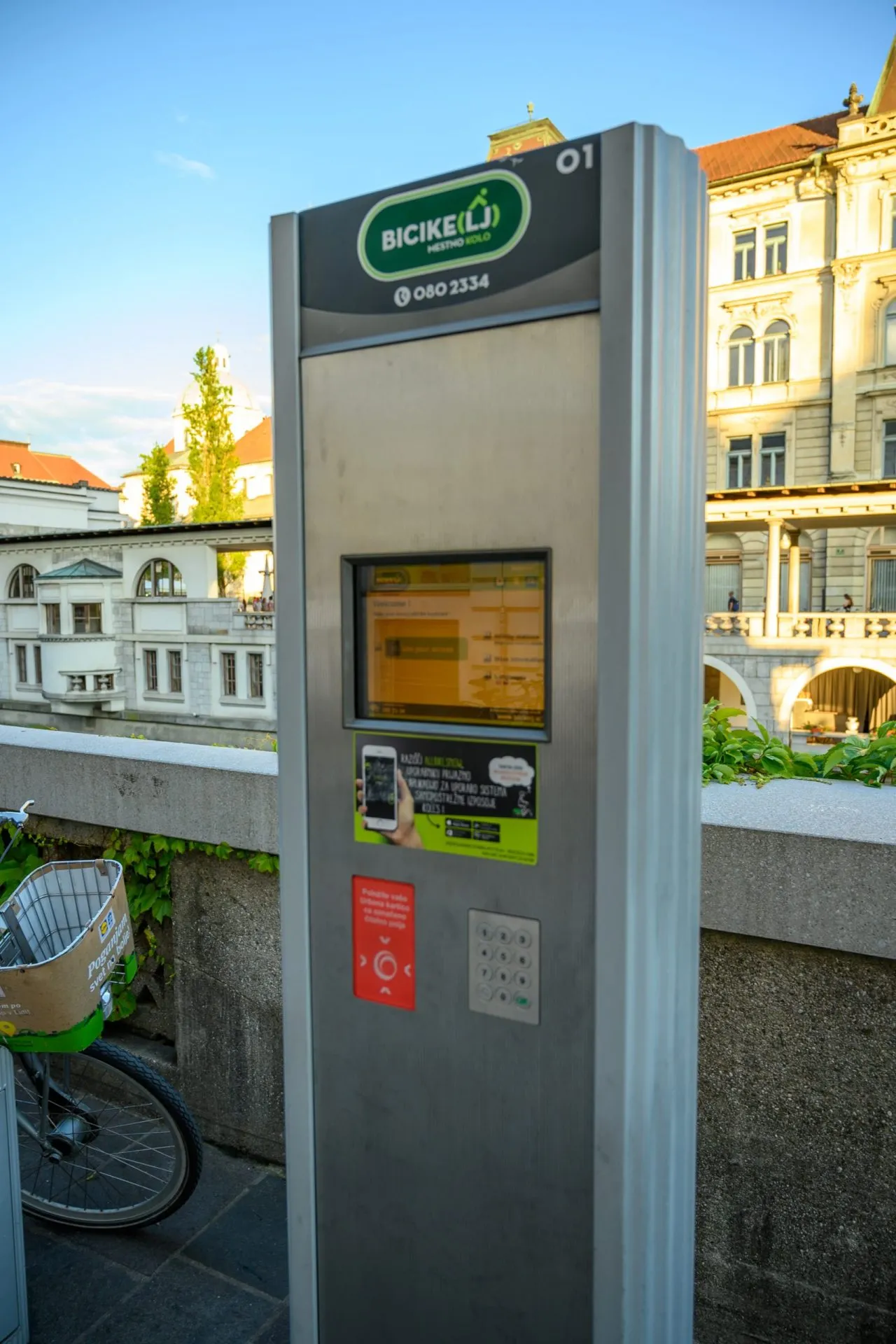 レンタル自転車の横に置いてある端末。1ステーション辺りの設置コストが高そう。
