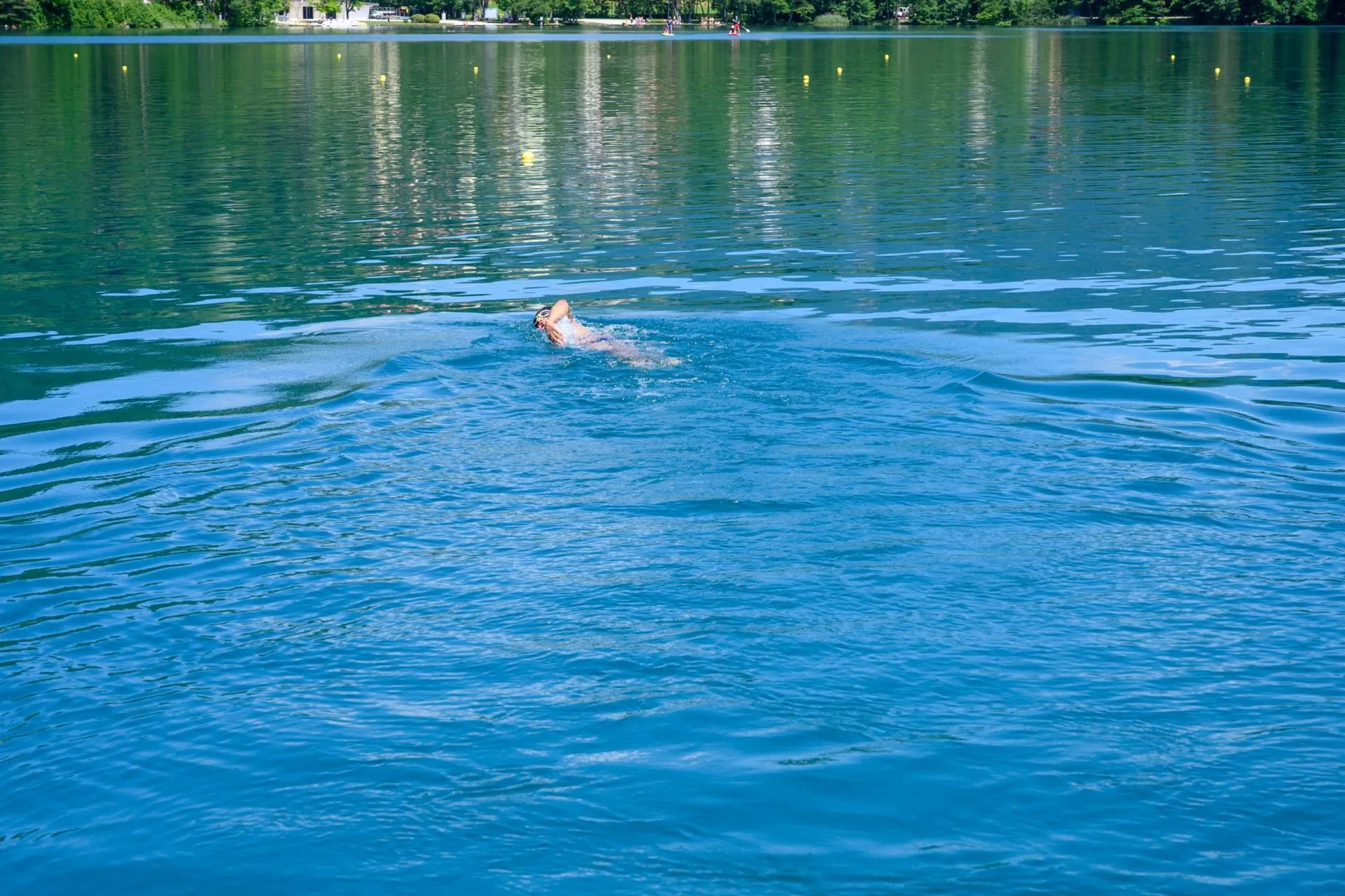 左下から真ん中ぐらいまでカヌーのコースになっている。そして、勝手に泳いでOKみたい。