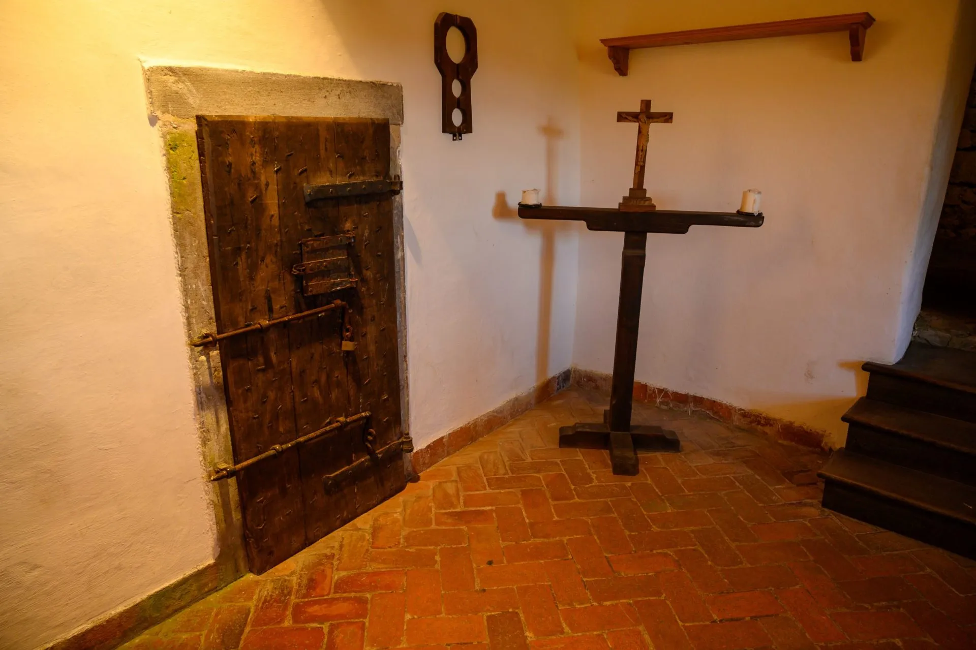 お城の中の裁判所。有罪になったらこのドアを開けて、崖から突き落とされたとのこと。