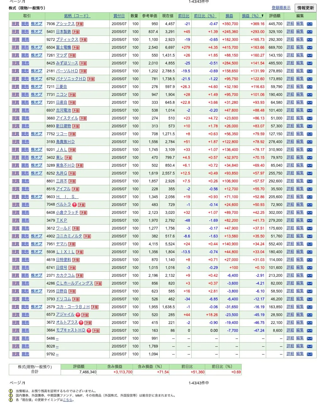 コカ・コーラ、ニコン、三菱自動車はもともとの業績が悪いので衰退へ加速している様子。。。私が普通に投資していたらすでにロスカットしてますね。