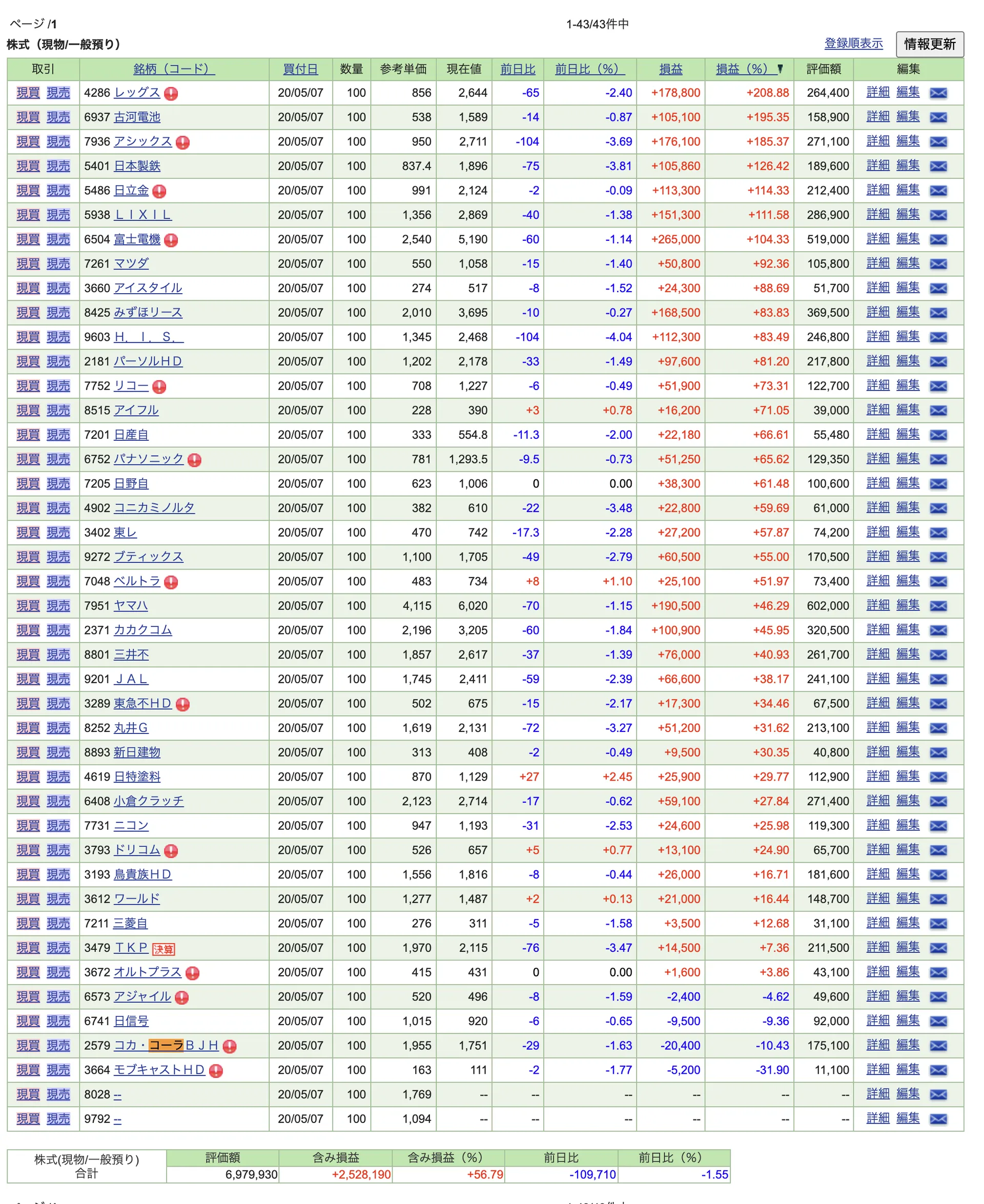 - もともと業績はさほどよくありませんがコロナ影響で落ちすぎている感じがします。