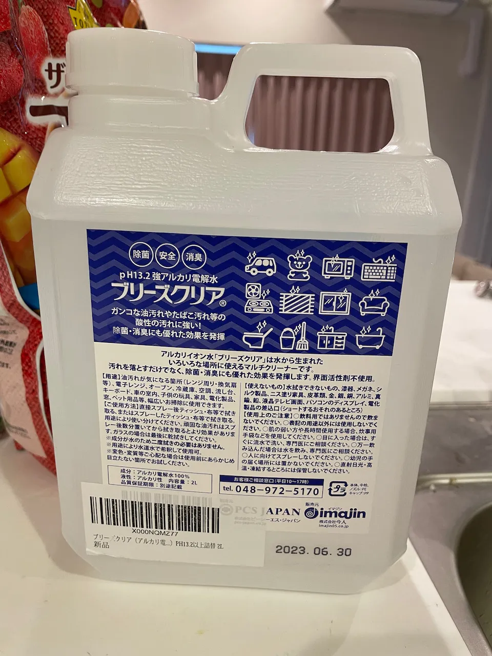 ブリーズクリアを使ってアルカリ電解水(激落ちくん)を作ります。**5倍に希釈しました。**トータル500ml作りました。