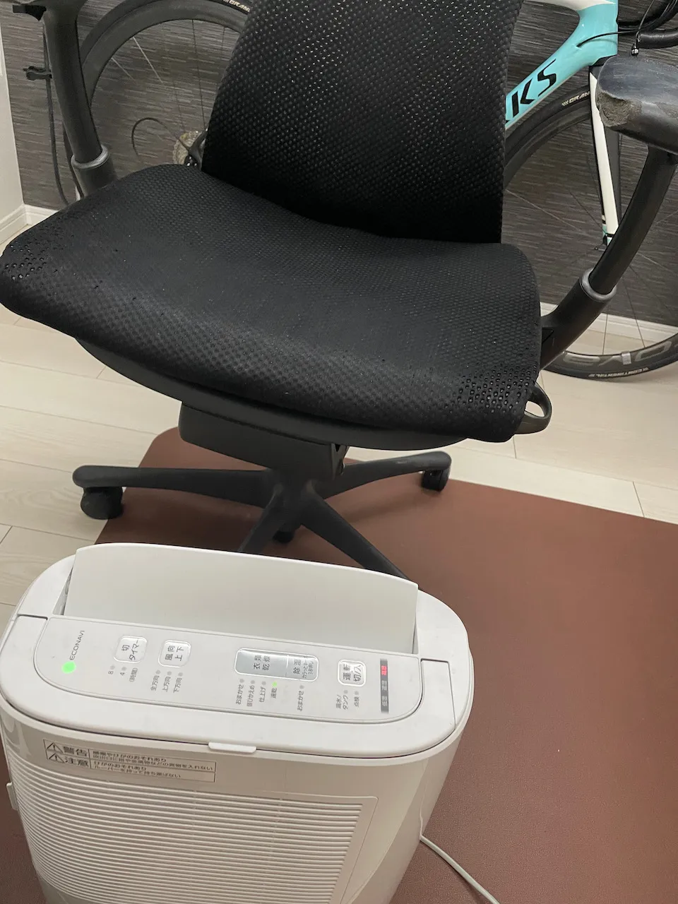除湿機を稼働して乾燥させます。色が黒くなりました。少しグレーがかっている感じが無くなりました。