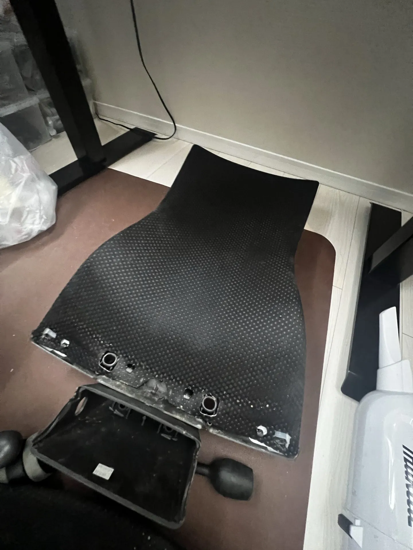 ここ数年は、樹脂と樹脂がこすれてキュッキュッというかキシキシといったノイズが鳴ります。特に椅子から立ち上がるときや座ったときです。経年劣化の症状かと思います。このノイズは、シリコンスプレーを塗布すれば解決できるという算段があるのである程度分解して樹脂の摩擦があるところにシリコンスプレーを塗布したいと思います。