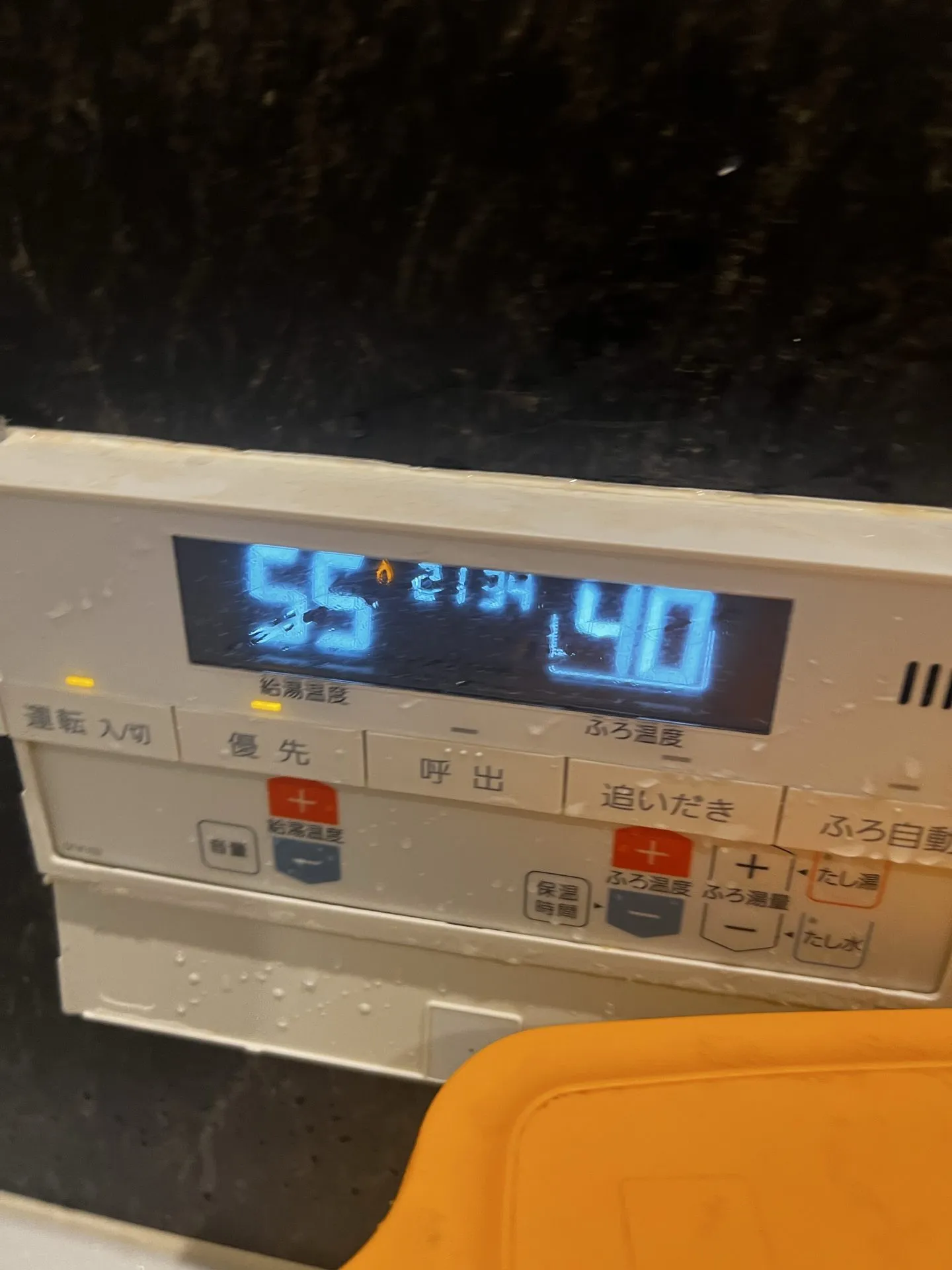 風呂にお湯を溜めます。オキシ漬けをするためには40〜50度が適温らしいので給湯器の最大温度である55度で給湯します。