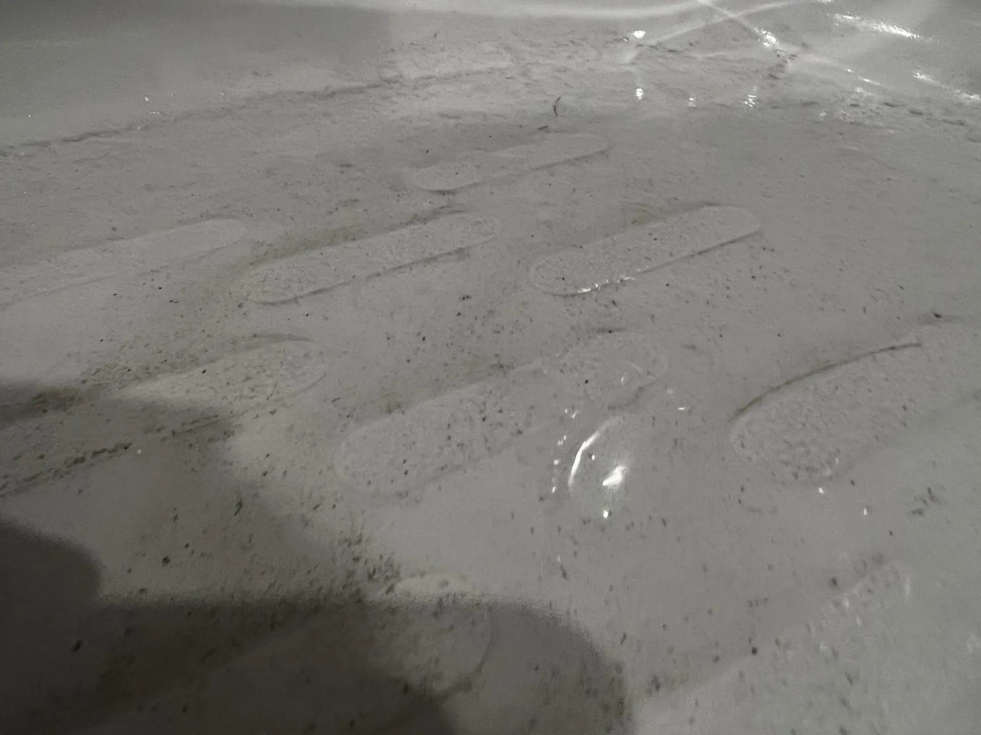 お湯を流した後の風呂の底には砂みたいなものがたくさんありました。屋内でしか使っていないのに謎です。