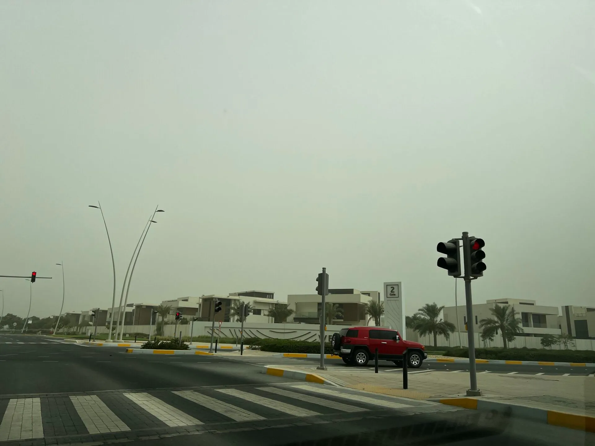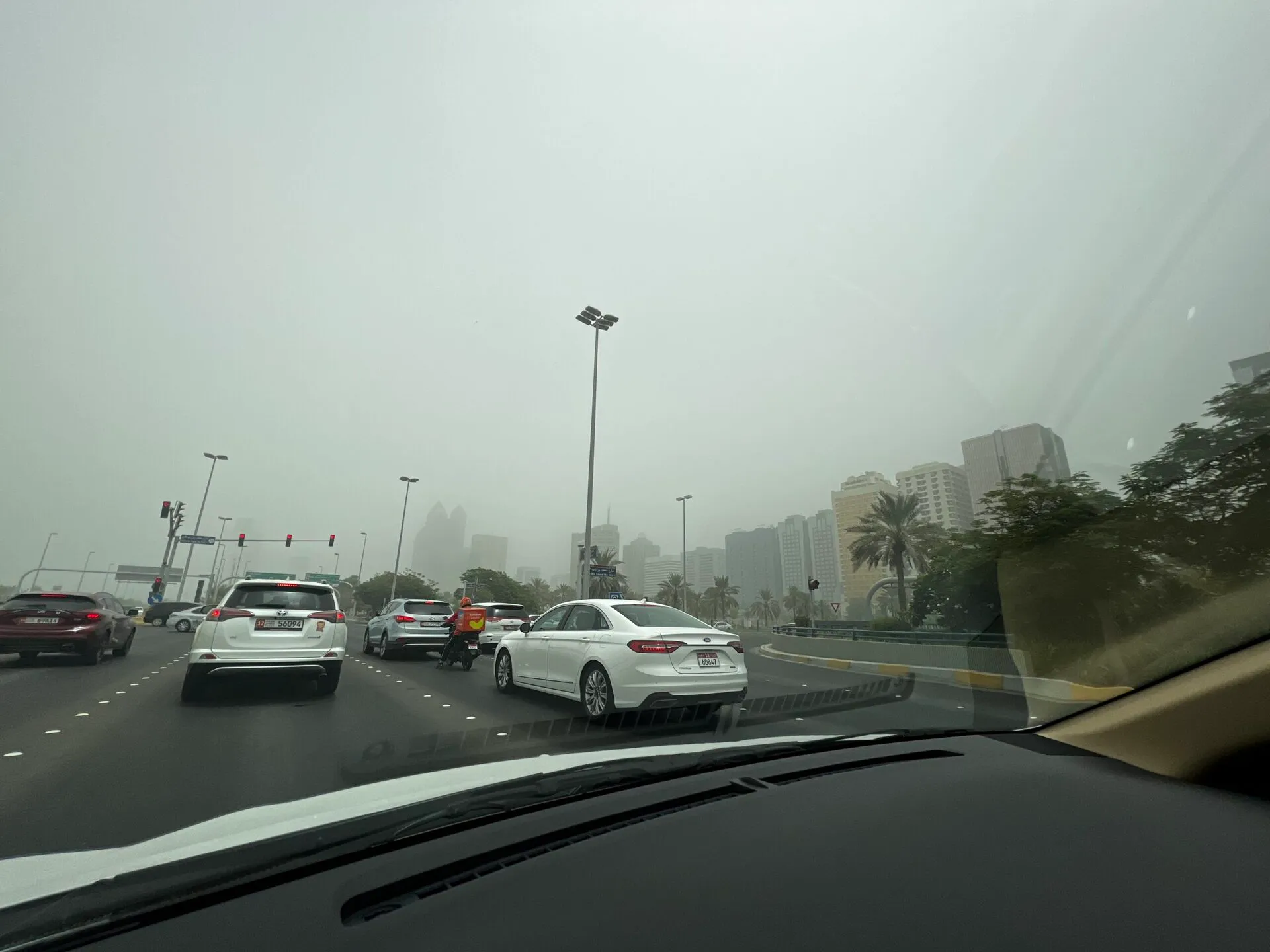道は広くて走りやすいです。砂なのか良くわからないですが空気が霞んでます。とりあえず一番遠いところにあるEmirates Palaceへ向かいます。