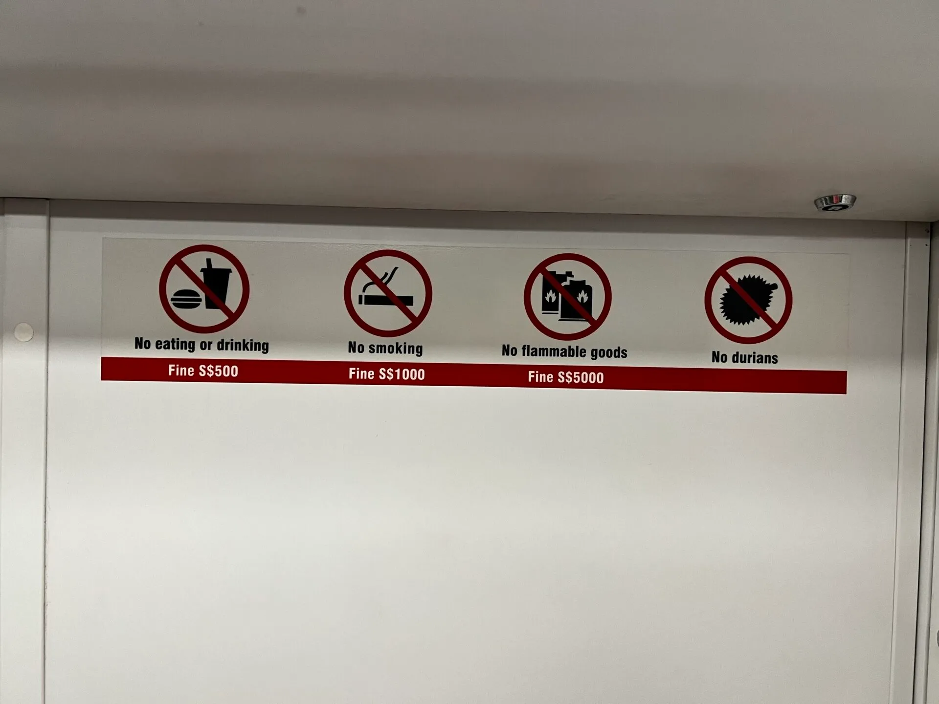 電車の掲示板。シンガポール名物です。飲食禁止、ドリアン禁止。