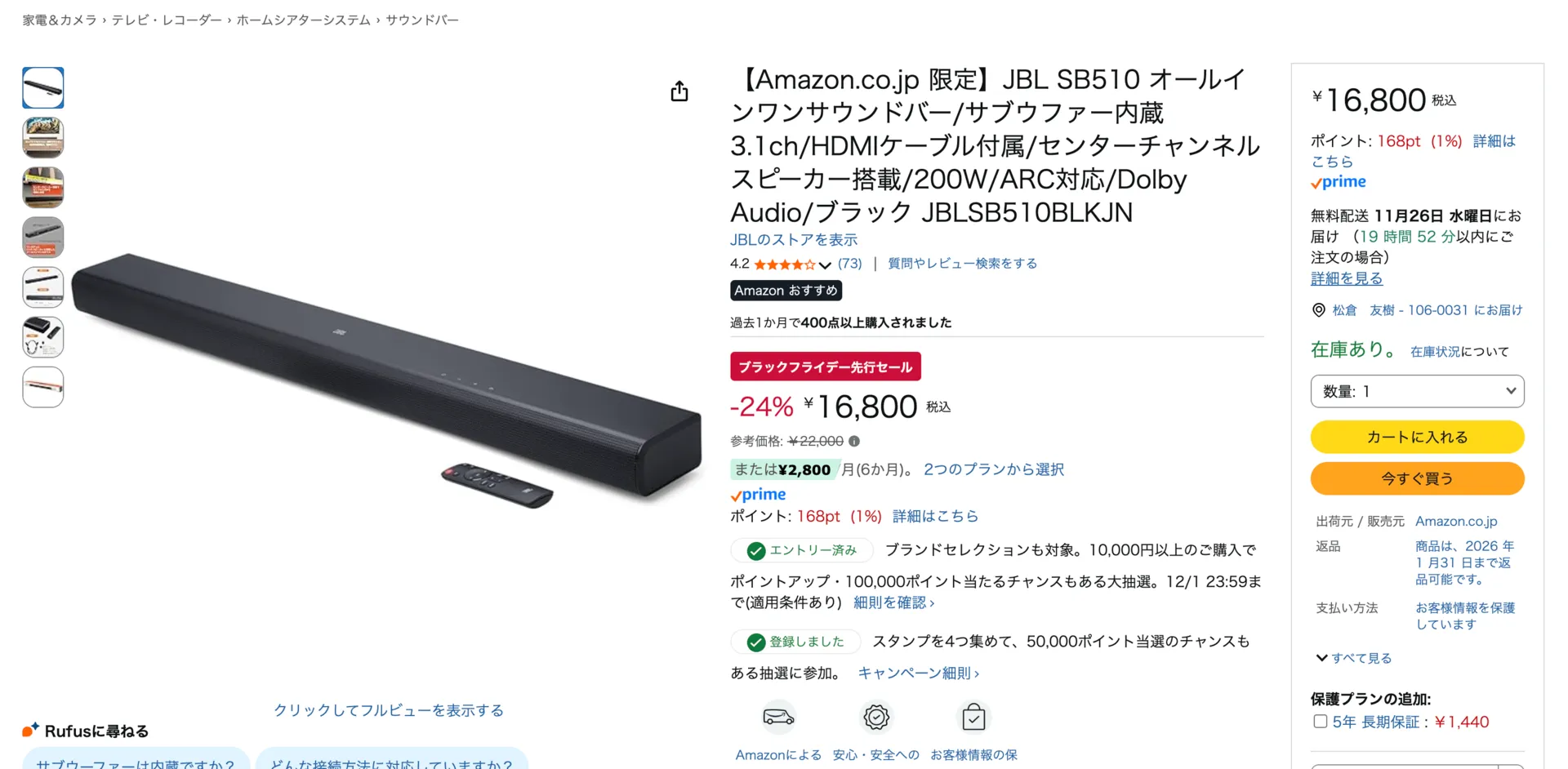 前モデルのSB510を調べたら、ほとんど仕様が同じなのに値段は60%ぐらいなので1つ前のモデルを買うのがおすすめです。17,000円でこのクオリティなら大満足だと思います。